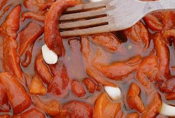 Retiramos primero el tallo con todas las semillas, ahora tiramos con cuidado y retiramos la piel, una vez pelados retiramos con los dedos con un poco de cuidado algún resto de quedado que se nos haya podido quedar, ahora los hacemos tiras del tamaño que más os guste. Los colocamos en un plato los salamos y echamos aceite y un poco de vinagre muy poco, podemos añadir también si queremos un par de dientes de ajo. Listos para comer o para guardar en botes, llenar el bote hasta arriba, poner la tapa, cerrar y poner boca a bajo. Listo. Lo podéis hacer así a mi me da buen resultado o bien al baño maría.