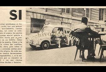 Lo curioso de la nota es que daban las instrucciones de cómo debía descender una dama de un automóvil con puerta suicida. Como ejemplo se tomó a un Fiat 600 que seguro era un modelo del año 1960, de los primeros que se armaron en Argentina. Porque el Fiat 600 D, que seguía trayendo las puertas suicidas, apareció recién en el año 1962.Las fotografías estaban divididas en dos grupos. En la forma correcta e incorrecta de descender de un auto con puertas suicidas. Máxime cuando había hombres al asecho del descenso de la conductora. Está de más decir que era una época donde las mujeres no habían popularizado los pantalones y estos eran uso casi exclusivo de los hombres.