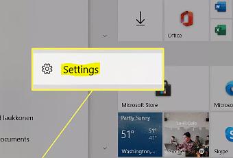 Si está utilizando el tema claro, verá que las opciones "Inicio, Barra de tareas y Centro de actividades" en la sección "Colores" del menú Configuración están atenuadas. Para empezar a solucionarlo, primero tendremos que cambiar al modo noche. Para acceder a su configuración, abra el menú Inicio en su computadora, luego haga clic en el símbolo de engranaje en la esquina inferior derecha.
