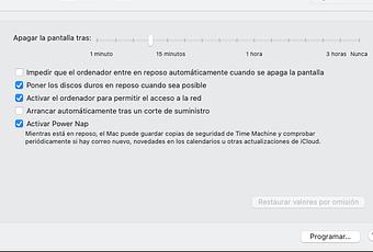 Al igual que se puede modificar el tiempo de espera, en dicha ventana también existe la posibilidad de desactivar por completo esta función. Así, conseguirás que el Mac no llegue a apagar su pantalla de forma automática en ningún momento, y que por tanto no se hiberne.