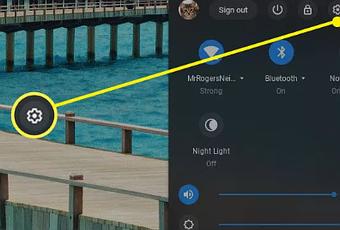 1. Para abrir la configuración de Chromebook en el navegador Chrome, seleccione la barra de tareas ubicada en la esquina inferior derecha del escritorio, luego seleccione el engranaje de Configuración.