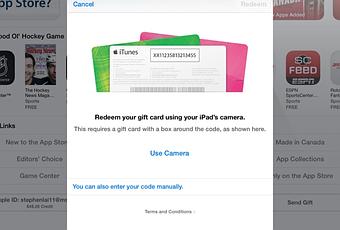 2. Se abrirá una ventana donde tienes que introducir el código que has recibido con tu vale. Puede canjear tu tarjeta de forma manual o con la cámara del iPad.