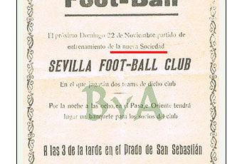 Dicha afirmación fue realizada en un foro, bético para más señas, por parte de uno de nosotros entre otras cosas porque, en caso de ser auténtico, no hacía más que demostrar que el Betis aún no existía a 22 de noviembre de 1908, porque si no, ¿a qué viene que dos equipos de un mismo club anuncien a bombo y platillo que jugarán un partido entre ellos mismos y “de entrenamiento”? ¿no había otro equipo en la ciudad? Pues ya ven que aún a esa fecha no existían. De hecho el primer partido conocido entre ambas sociedades no se efectuará hasta abril de 1909.