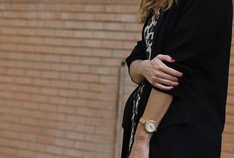 Para combinar mi nuevo vestido animal print, elegí una blazer negra larga y fluida; me gustan mucho este tipo de americanas porque creo que favorecen y estilizan mucho (súper prenda para chicas con caderas anchas) y unas zapatillas Adidas Stan Smith.