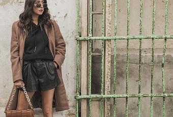 En este caso, he querido combinar mi sudadera con unos shorts de polipiel y un abrigo de líneas clásicas en color camel.