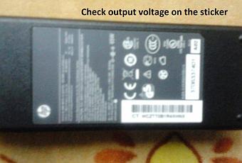 - Ahora Revise su adaptador de CA portátil para ver la tensión o los valores de salida de corriente como se muestra a continuación.