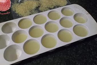 El zumo de limón lo hice cubitos, cuando esté congelado se puede pasar los cubitos a una bolsa o embase de plástico tapado y seguir congelando en la cubitera. Cuando quiera hacer algún bizcocho de limón, por ejemplo, solo necesito un cubito que es la dosis exacta.