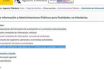 - Pulsa en "Consulta certificación telemática de un contribuyente expedido a terceros"