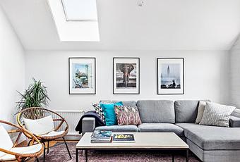Este ático de 65 m² está en el centro de Estocolmo, una gran ciudad, pero si nos fijásemos sólo en la decoración y el estilo, a primera vista, no sabríamos con certeza ni donde ubicarlo, ni decir qué tipo de vivienda es.