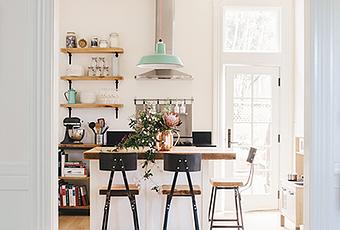 Unos taburetes de estilo industrial, con la madera y el hierro negro como protagonistas dentro de una cocina de estilo nórdico, si blanca blanquísima y con una encimera lo que viene a ser el BLACK & WHITE de toda la vida.. ¿que han hecho? integrar ambos estilos de una forma totalmente estudiada con un resultado NORDINDUSTRIAL increíble.