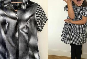 Hoy estrenamos vestido con estampado ginghan negro. La camisa es de un mercadillo de segunda mano, de esos montones de 1 €. Llevaba tiempo buscando tela de este estampado y en las tiendas de mi ciudad no la encontraba, no me decidía a comprar online y cuando vi la camisa no me lo pensé.