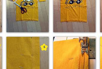 - Da la vuelta a la camiseta y une con alfileres el bajo de la camiseta para asegurar que quedan alineados