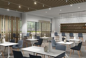 Zonas de restauración: Transformación de bufés libres en espacios showcooking. Un diseño simple y espacios diáfanos para facilitar la libre circulación. Implementación de sistemas de esterilización del aire o medios estables de desinfección. Uso de pantallas de protección para mejorar la seguridad de personal y clientes. Mobiliario confortable y de fácil limpieza.