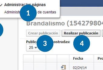 - Tras refrescar la página, se cargarán en la columna de la izquierda todas las páginas de Facebook gestionadas y tendrás que seleccionar aquella en la que quieras realizar una publicación.