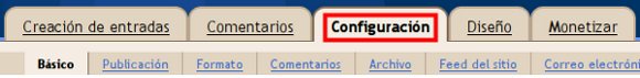 - Configuración, para configurar nuestro blog, es decir, una serie de opciones para personalizarlo según nuestros gustos y necesidades.