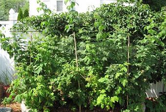 Muchos lugares que he visto decir frambuesas producto solamente en la madera nueva y que lo rebajen cada año. Esto no tiene ningún sentido para mí, todo mío producen en la madera tanto nuevos como antiguos. Uno cañas viejas año comenzará a producir en julio, cañas nuevas de crecimiento comenzará a producir en agosto por lo general, es para mí aquí en la Zona 5. Si me lo rebajen todos los años que tendría que esperar hasta agosto para conseguir las bayas, y se perdería un mes de 0,25 o 0,5 libras por día de las cosechas.