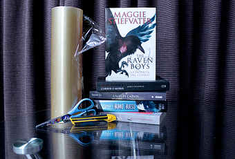 Los único que necesitan es papel film o papel de cocina transparente o plástico de cocina (que todos son lo mismo), cutter, exacto, tijeras o algo para cortar el plástico, y sus libros. También necesitarán una mesa o superficie de trabajo que sea de vidrio.