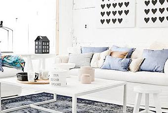 Sin duda un acierto seguro si lo que quieres es tener un salón B&W y cambiar un poco con un toque de textiles.
