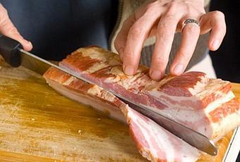 El buen tocino proviene de pequeñas granjas locales y los animales alimentados con pasto. Estos pequeños agricultores están siendo exprimidos a distancia por las grandes corporaciones multinacionales de carne. A menudo van a la quiebra porque todos quieren producto barato, independientemente de la calidad y los posibles efectos secundarios.