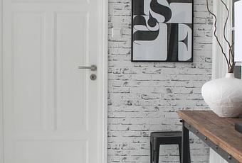 Nuestra primera opción es conseguir el efecto real pero sino tienes la suerte de tener ese ladrillo maravilloso puedes poner placas, si aún así tu presupuesto no te lo permite la última opción es usar papel pintado como en el recibidor de las fotos de hoy.