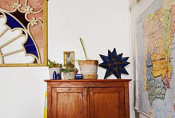Al lado de la pared de los mapas murales, he colocado unas cuantas macetas, tres total, dos son crasas y