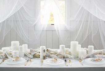 Sí, lo habéis oído bien ¡en color blanco! ¿Por qué toda la decoración de Halloween debe ser negra? Con los elementos apropiados, podemos conseguir una decoración para Halloween igualmente impactante ¡o más! y sorprender con una mesa de Halloween de miedo. Suena bien no?