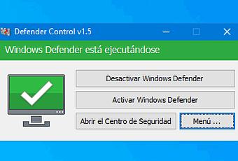 Las opciones de Defender Control son pocas y necesarias para que desactive el antivirus de Windows.