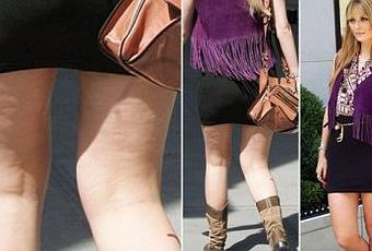 Poner en práctica una dieta para equilibrar las calorías y bajar de peso. El exceso de grasa en el cuerpo hace que las células de grasa en el cuerpo aumente de tamaño, según un estudio realizado por Lester Salans en el Journal of Clinical Investigation. Esto hace que las bolsas de grasa sobresalgan aún más a través del tejido. La pérdida de esta grasa reducirá esta protuberancia, aunque no lo eliminará completamente. Paso 2 Iniciar un programa de entrenamiento con pesas diseñadas para tonificar y reafirmar los músculos de las piernas. Las sentadillas y las estocadas son ejercicios que se dirigen a los músculos de las piernas. La alteración de la forma y tamaño de sus músculos puede evitar que la grasa se pegue en la superficie. Este ejercicio también quemará más calorías, ayudando a perder más peso.Paso 3