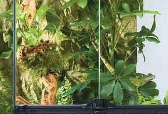 - Terrarios verticales: especialmente diseñados para especies tropicales y aquellas que viven en bosques húmedos. Su diseño alargado permite colocar troncos y estructuras para que estos animales vivan en las ramas.
