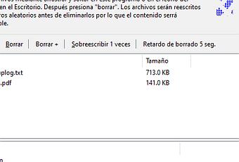 - Borrar: Empieza a sobrescribir los archivos y carpetas con números aleatorios y procede a eliminar.