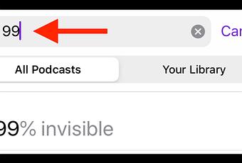 Si ya tienes un podcast en mente o alguien te lo recomendó, toca la pestaña "Buscar" y luego escribe el nombre del podcast.