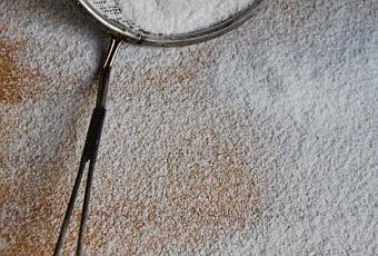 Utiliza un bol o vaso alto, ten en cuenta que se creará una nube de polvo del azúcar glass.
