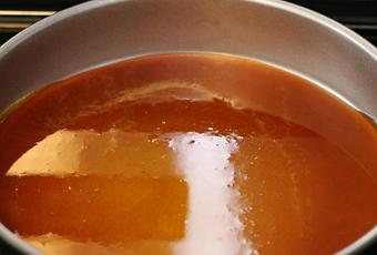 A la mayoría nos sucede que cuando deseamos hacer un caramelo liquido en casa para agregarle a un postre, como el flan o budín de pan o se nos quema o se nos seca poniéndose duro como una piedra. Precisamente en esta receta sencilla vamos a ver como hacer un caramelo bien liquido no solo para la base de la flanera o molde, sino también para bañar la superficie como una salsa dulce.