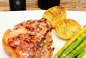 Servir la carne junto a los espárragos y las patatas, y poner un chorrito de Aove Oro Bailén por encima del conjunto y unas lascas de flor de sal.