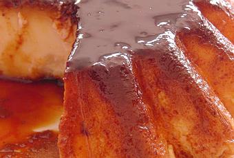 8. Deja enfriar el flan en la nevera y para desmoldarlo, colócalo sobre una bandeja y ayúdate con un plato grande, apoyándolo sobre el molde savarín. Da vuelta rápidamente y disfruta.