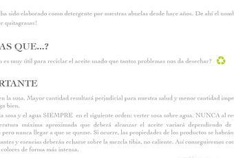 Con ello se pretende fomentar el reciclaje de aceites que sabes son productos difíciles de desechar, y el conocer bien los componentes que llevan los productos que habitualmente utilizamos.