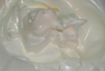 Batir las claras a punto de nieve e ir agregando el almíbar en forma de hilo , batir hasta formar picos.