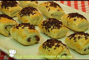 Son muy fáciles de elaborar, sobre todo si utilizamos láminas de hojaldre congelado, que es lo que te recomiendo, ya que el resultado de este hojaldre es muy bueno y así te ahorras el trabajo de hacerlo tu mism@, que la verdad es muy laborioso. Como podrás ver tan solo tendrás que cortar las láminas en tiras y poner el chocolate en el centro, las cierras bien y al horno con ellas, en un momento las tienes listas, ya ves que simple.