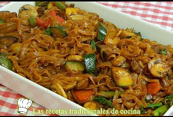 Pues como verás una vez preparados los noodles tan solo cocinas las verduras en su punto, haces una pequeña salsa y salteas un par de minutos los fideos de arroz, ya tienes listo este gran plato con un toque oriental buenísimo.