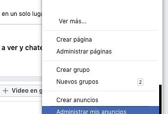 Por lo tanto, usaremos el Administrador de Anuncios, al cual puedes acceder desde facebook.com/ads o desde el menú superior derecho dando clic en la opción “Administrar anuncios”.