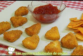 la elaboración es muy simple, primero tienes que triturar bien los nachos, luego rebozas los quesitos en harina y huevo batido, haz esto un par de veces para que quede bien rebozado, luego los rebozas en los nachos triturados. Es importante que los dejes reposar en el frigorífico para que estén bien compactos cuando los frías.