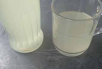 - Una vez listo, el agua se verá turbia con un color blanquecino y verás alguna burbuja, esto es normal, es parte del proceso de fermentación.