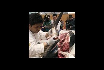 Keiichiro Ohtsu fue le encargado del ronqueo, es decir, del despiece, del atún con una precisión asombrosa utilizando maquinas y sierras como se suele hacer? Pues no, lo hizo con una katana.