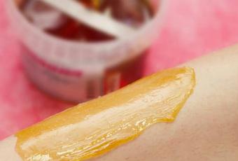 - Vierte la cera de miel casera para depilar en un recipiente y deja entibiar.