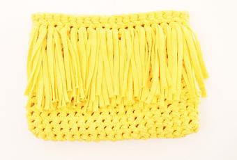Una de las cosas mas chulas que he hecho de crochet ultimamente, y de las que más ha gustado en mi Instagram, y sobre todo en mi Facebook ha sido este bolso de trapillo de mano, o clutch de trapillo, con flecos!