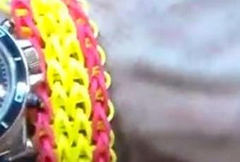 En unos meses se va a celebrar en Brasil el mundial de futbol y la selección española de futbol va a participar en él. Con este brazalete de gomas puede animar a la selección española. En este tutorial vamos a aprender cómo hacer un brazalete con la bandera Española. Es un vídeo del canal EggSurprise. Los materiales que se han empleado para realizar el trenzado de esta pulsera son 59 gomitas de los siguientes colores: 24 rojas y 35 amarillas. Además necesitara una anilla para el cierre y el telar Rainbow Loom o similar.