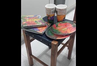 Foto 1: Platos, vasos y servilletas de papel con dinosaurios
