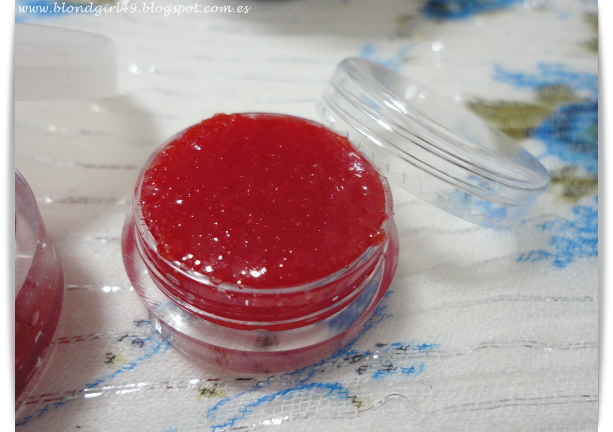También necesitaremos algún envase dónde hacer las mezclas, una paleta para mezclarlo todo y los botecitos para guardar el exfoliante ya terminado:¿Cómo lo he hecho?Y luego ya sólo nos queda meterlo dentro de un recipiente que quede herméticoEsta es la textura que debería tener: grumosa y húmeda pero sin resvalarseA mi me encanta usarlo al menos 3 veces por semana, con el fresquete los labios se me suelen agrietar o también según que días los tengo con pielecitas así que viene muy bien exfoliar:¿Vosotras usáis exfoliantes para los labios? ¿os gustan? Pues este era el remedio casero que tenía ganas de enseñaros, espero que os haya gustado y que os animéis ha hacer vuestros propios exfoliantes cambiándoles el color y los aromas^^Un besito muy grande, ¡feliz comienzo de semana!