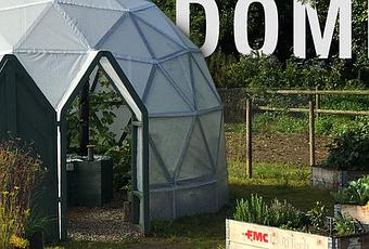 Una cúpula geodésica o domo que combina el reaprovechamiento de materiales y algunos componentes electrónicos para dar vida a un invernadero casero casi autónomo y con un eficiente sistema de riego.