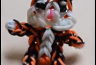 En este tutorial vamos a aprender cómo hacer un tigre de gomas. Es un vídeo del canal Alexa C. Los materiales que se han empleado para realizar el trenzado de este tigre son 103 gomitas de los siguientes colores: 40 naranjas, 32 negras, 30 blancas y 1 rosa.No necesitarás usar ningún telar.